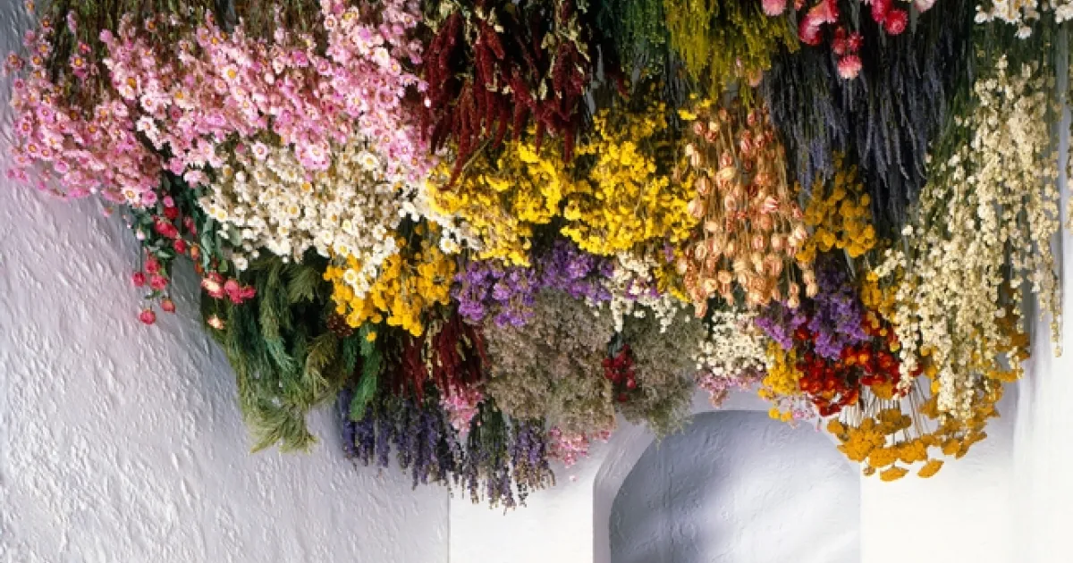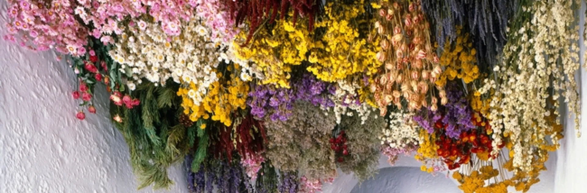 For drying, plant material should be harvested when it is completely free of moisture to avoid the development of mold. If you must gather flowers when they are wet, toss them gently on blotting paper to remove surface water, and stand the stems in a container of water in a warm, dry room until the petals are thoroughly dry. Don't be tempted to start one of the drying processes while the flowers are still damp.