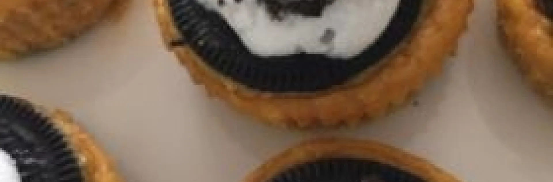 Preheat the oven to 350. Place 18 cupcake liners in cupcake/muffin pans. Beat the cream cheese and sugar until light and fluffy. Add the sour cream, pumpkin, nutmeg, cinnamon and flour and beat until creamy. Add the eggs and vanilla and beat until mixed in. Place half of an Oreo, frosting side up, in the bottom of 18 cupcake liners and spoon the batter into the liners. Place the other half of an Oreo into the top of the batter, frosting side down. Bake for 24 minutes. Cool in pan for 15 minutes before removing and placing on a wire rack to finish cooling. Keep refrigerated. Crush the remaining two cookies. Top the cheesecakes with Reddi Whip and cookie crumbs.