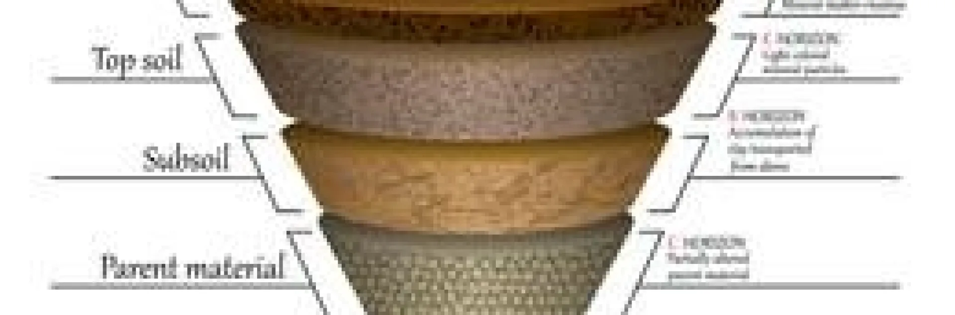 Soil formation results in layers like the layers of a cake. The topsoil is where the most organic matter resides and where most biological activity occurs. The subsoil layer tends to be brighter in color and finer textured than the topsoil, and the subsoil is prone to be low in organic matter and is generally less fitting for plant growth.
