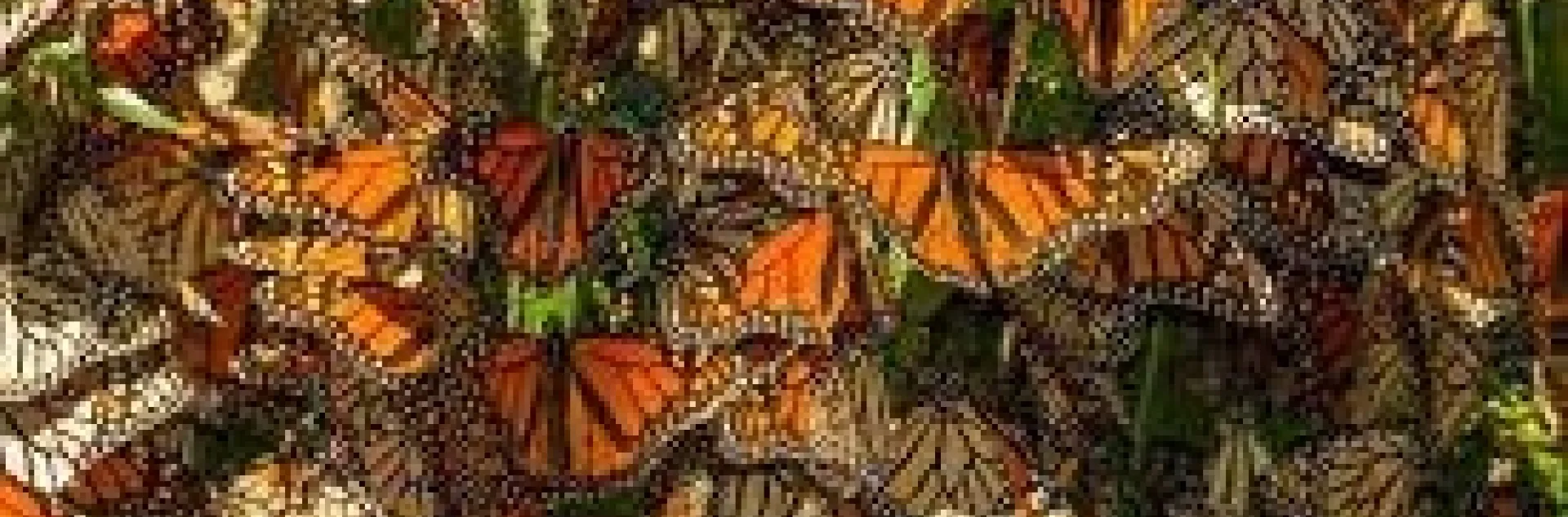 Monarchs living west of the Rocky Mountain overwinter in California along the Mendocino Coast and are known to gather in giant clusters of Eucalyptus, Monterey Pines, and Monterey Cypresses, as far south as Baja.