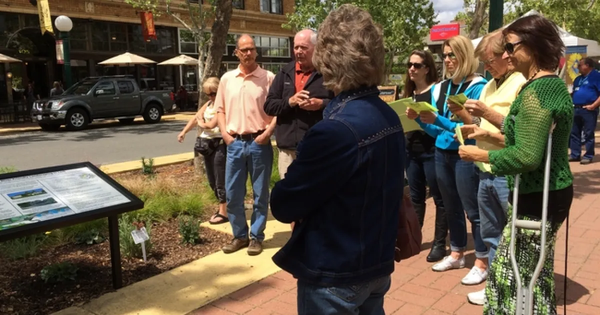 In conjunction with the Lodi City Council, local business owners and the public, San Joaquin County Master Gardeners have developed a river-friendly demonstration garden in downtown Lodi, on School Street. It showcases the importance of working together as well the principles of a sustainable garden and landscape. The garden area also includes a community-built bench featuring plants and animals of the Mokelumne River watershed. The bench was designed by artist Donna Billick, and the project was overseen by the City of Lodi. Enjoy lunch at a Lodi restaurant and check out the garden.