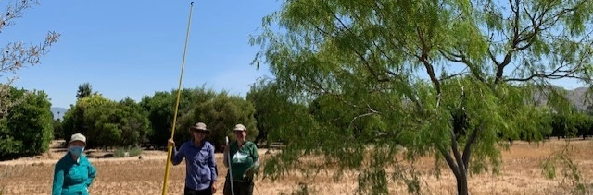 It became a reality when Mandy Parkes, district manager of Inland Empire Resource Conservation District, and Shelli Stockton of the University of Redlands received partner grants from the Climate Action Corps to start a nursery and get the “climate-ready landscape trees” in the ground. To date, nearly 100 trees from the study have been planted, including over 40 at the Redlands Sports Complex. As the volunteers in Redlands know, planting trees helps to cool these heat islands. After a long day of digging and planting in June, the volunteers were satisfied with their hard work and looked forward to sharing their experiences.