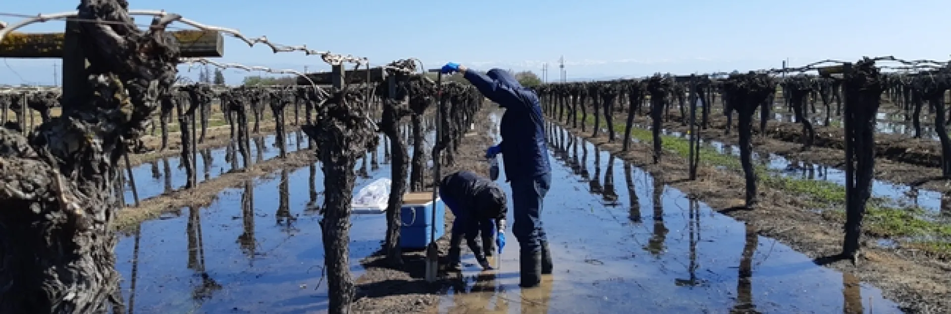 A recently published study by UC scientists sheds new light on how nitrates move through an agricultural recharge site and how growers might reduce potential leaching. Researchers analyzed data from two grapevine vineyards at Kearney Agricultural Research and Extension Center in Fresno County – one flooded for two weeks, and other for four.