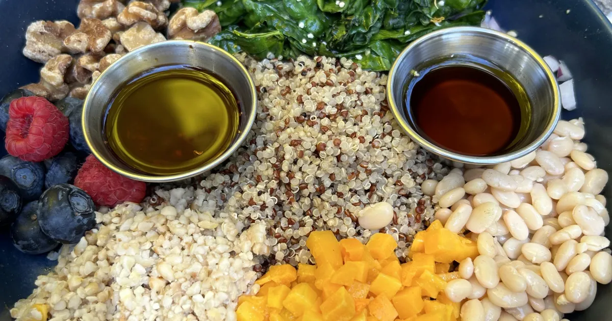 Simply eliminating meat and milk doesn’t cut it, though. Research is clear that plant-based foods in their unprocessed or minimally processed forms are the answer, whereas more processed options that you might find in bright packages and convenience meals could increase chronic health risk. A recent analysis of long-term data shows that avoiding “ultra-processed foods” (UPFs) is associated with healthy aging, including good cognitive function, physical function, mental health, living free of chronic diseases and reaching the age of 70 years. The good news is that California has an abundance of fruits, vegetables, nuts and grains grown right here. Connect with local farmers and producers to get the freshest products, and you will quickly find that meatless meals can be even more tasty than the traditional Thanksgiving turkey.