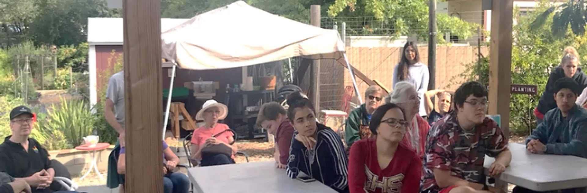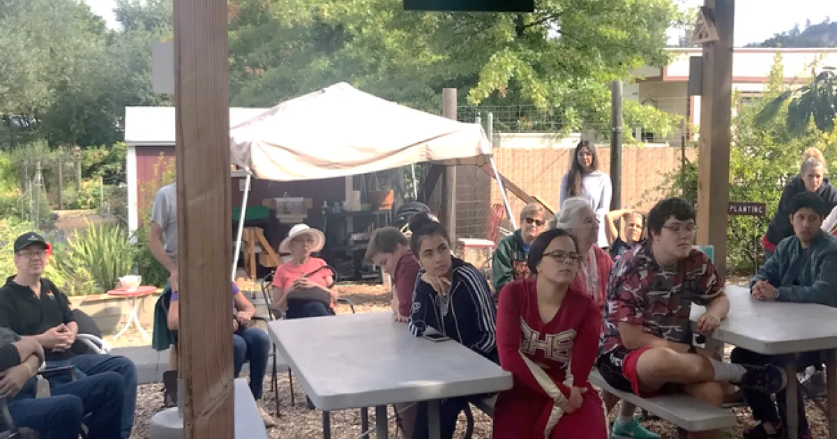 Over this past year, a group of community members from the San Andreas Senior Center participated in regular nutrition education and physical activity lessons provided by CFHL UCCE. This group has been able to apply what they have learned from each educational series personally, as well as within their church when preparing free community meals. As a result, the seniors wanted to extend this knowledge further into the community by inviting a Calaveras High School special education class to an intergenerational event at the Master Gardener Demonstration Garden.