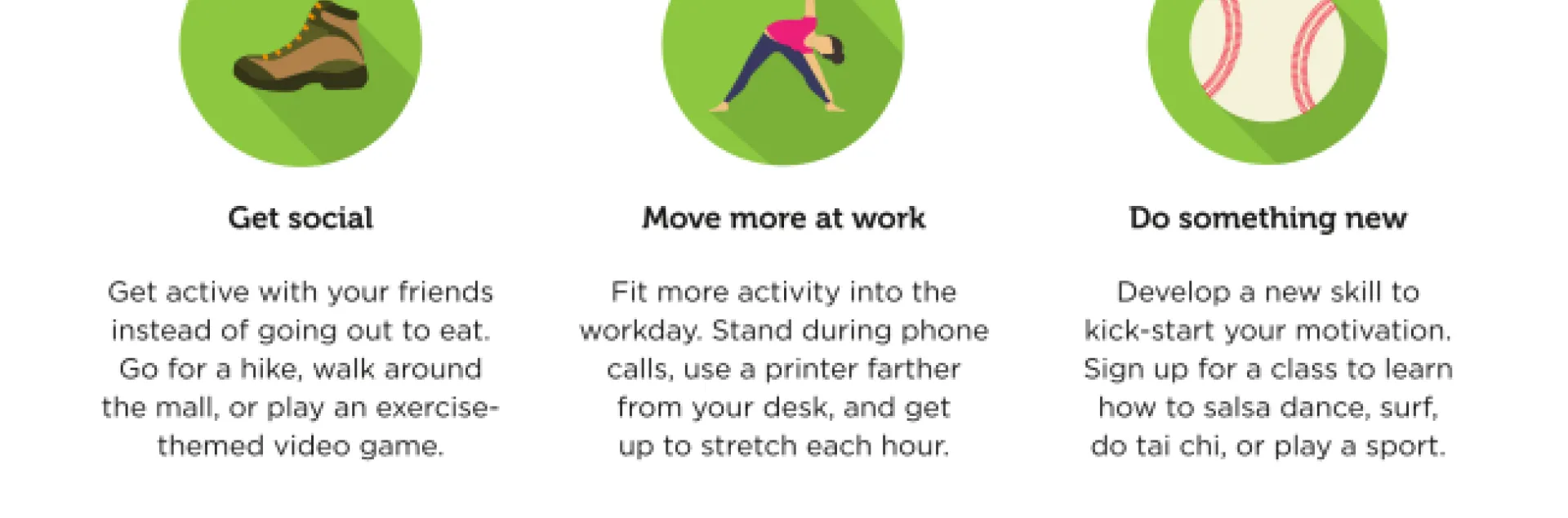 Looking for motivation to stay active this summer? The Physical Activity Guidelines for Americans recommend adults engage in moderate physical activity for at least 2 1/2 hours each week - that's about 1/2 hour a day on most days. When it's hot outside, going for a brisk walk during the cool early morning or evening hours is a good way to meet this goal. See more tips below for creating an active lifestyle.