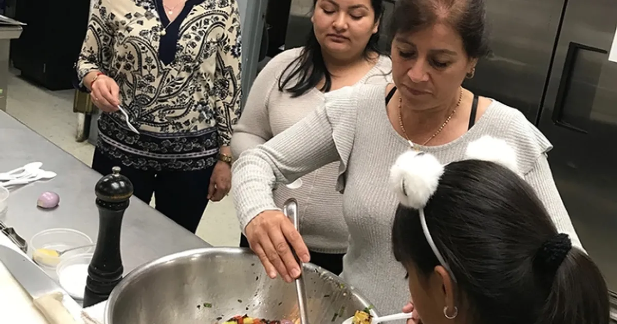 The parents had just completed the EFNEP Eat Smart ? Be Active nutrition education series at Tulare Adult School. Mariana Lopez, a bilingual nutrition educator, led the EFNEP classes from March 19 to May 21. Ten participants completed the series and graduated. The graduates expressed interest in a cooking workshop. Deepa Srivastava, the UC Cooperative Extension nutrition, family and consumer sciences advisor, reached out to Chef Jeff to initiate this collaboration and Lopez coordinated efforts to organize the cooking workshop.