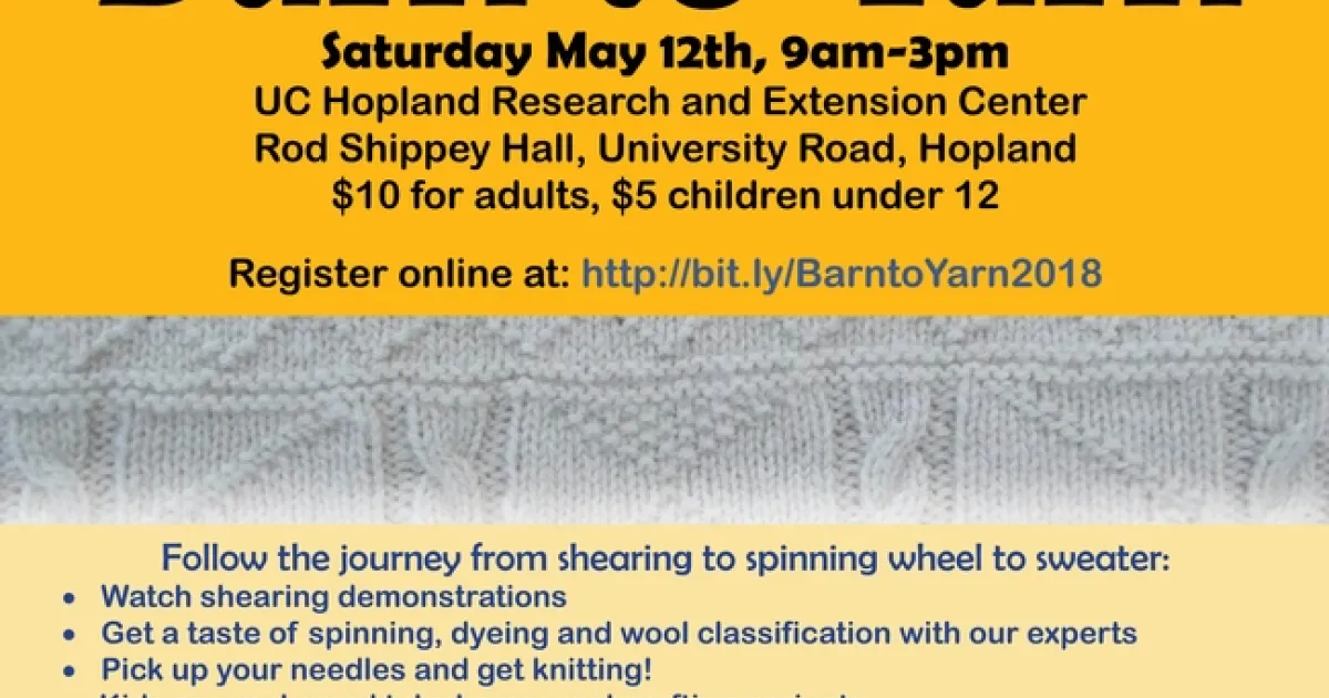 Admission is $10 for adults, children under 12 $5. HREC asks visitors to leave their pets at home to protect the site and the sheep resident there. Bring your own picnic and all utensils; tea, coffee and water will be available. Visit http://bit.ly/BarntoYarn2018 to find out more and purchase your ticket. Barn to Yarn will be held at the Rod Shippey Hall, 4070 University Road, Hopland, CA 95449 from 9am-3pm on May 12th. For more information contact Hannah Bird, (707) 744-1424, Ext. 105, hbird@ucanr.edu.
