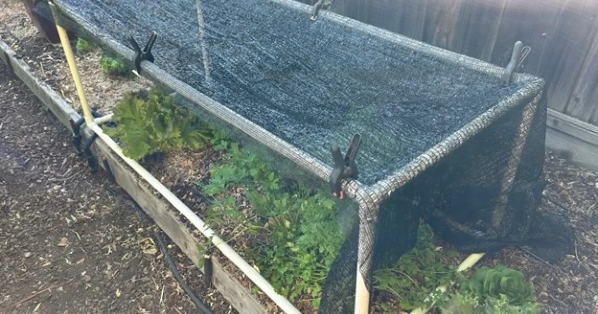 A DIY Frame can be made from fencing, vegetable cages, etc. and shade cloth can be draped and secured over the frame.