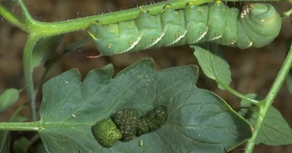 Help Desk Response: Thank you for contacting the UC Master Gardener Program Help Desk. You asked about insects in your yard. There aren't insects named green horned worm or red boxed beetles, but you probably mean the tomato hornworm (a green worm with a pointy "horn" on its rear) and possibly the box elder bug or the red-shouldered bug.