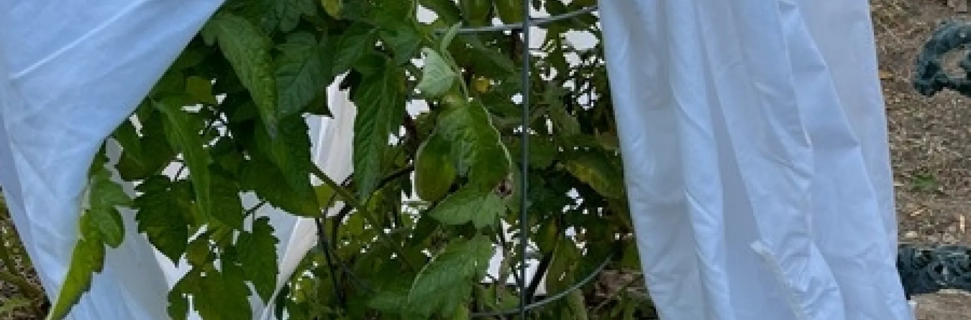 Frost Covers: Protect tender plants and trees with frost covers either purchased or homemade. Sheets, blankets, tarps, or burlap can be used, but these need to be propped up above the leaves and removed in the morning. These materials can become wet with dew and damage sensitive leaves. Commercial frost cloth comes in several weights and can provide up to 4°F protection (find it at your local nursery or home and garden store). It can float over the top of the plants and can be left on for several days since light can pass through it. For very sensitive plants, make sure the cover goes all the way to the ground. If very cold temperatures are forecast, also wrap the trunk of a young citrus tree with cardboard to protect the bud union and above.