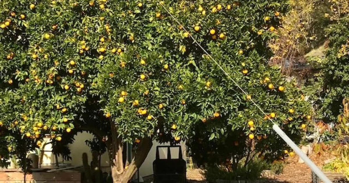 Thanks for your interest in our distressed navel orange tree. Here is the information you requested from our phone conversation and some photos. My 60 - 80 (?) year old orange tree has, for the three years we have lived here, regularly produced abundant crops of many hundreds of exceptionally delicious fruit each year, February - June.