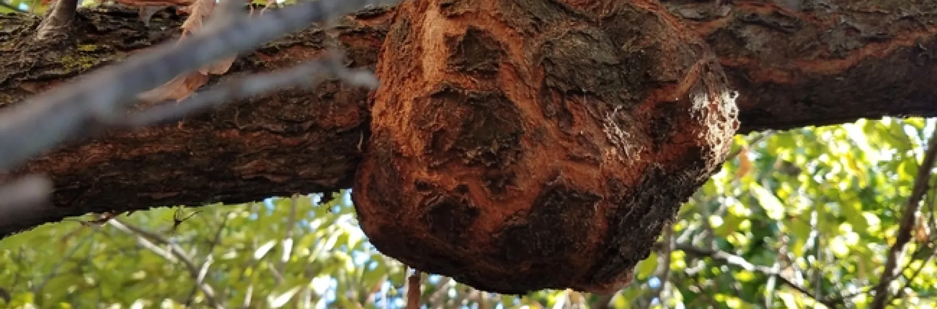 Client's Request: I'm a trapper in the Ag Department. We have been looking for plum bud gall mites in the county. I recently came across this plum tree with a huge growth or gall, it's 8" long and 7" wide on the underside of a branch, the tree is around 15 years old. Homeowner wants to know what it is and what should be done about it. The tree is in Pittsburg. Any ideas?