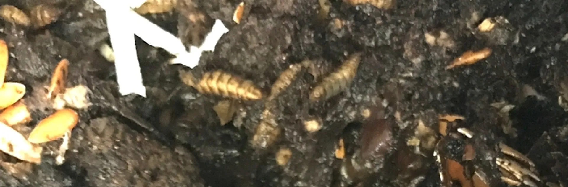 Client's Request: Hi Master Gardeners, I live in Oakley and have had a worm bin in the backyard for several years. I recently noticed some other creatures in the worm bin that look like some kind of larvae, but they do move around. There are many of these in the bin, probably a hundred or so. I have enclosed two pictures of them, one in the worm bin and one in a glass jar. Are you able to tell me what they are and if they are harmful? There don't seem to be very many worms left in the bin, which used to have many worms. Thank you for your help.