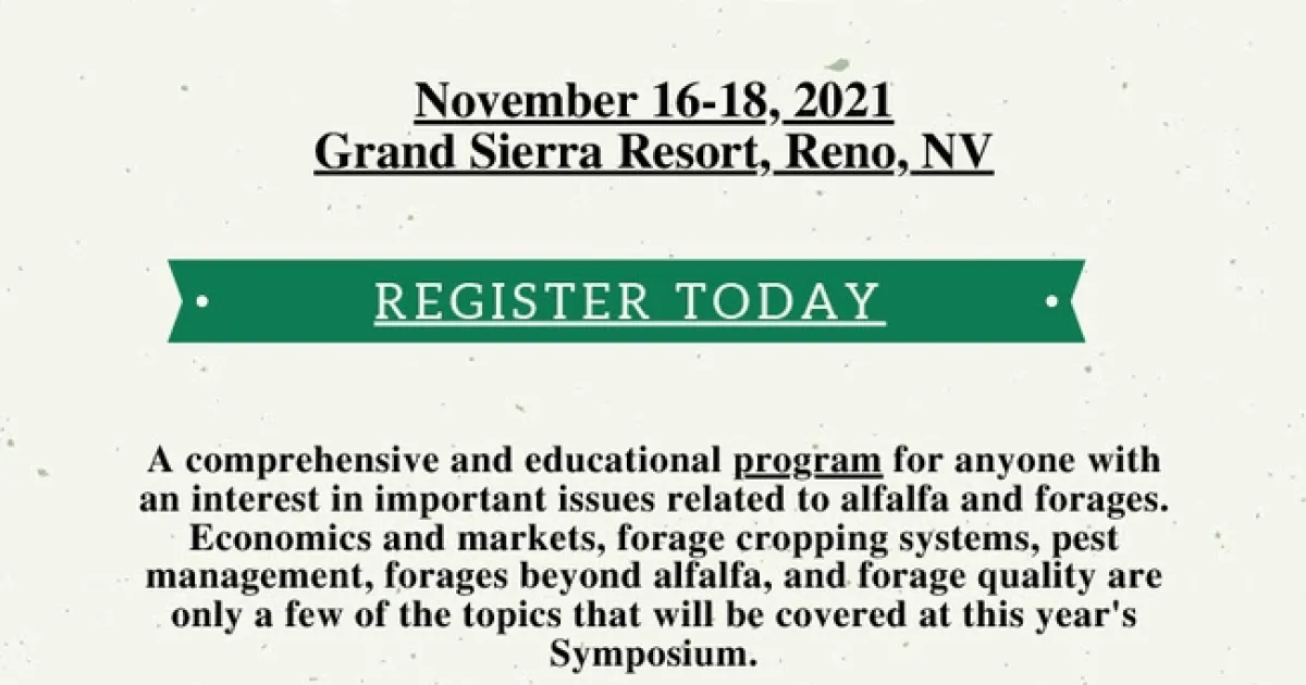 September 17, 2021 Print Intermountain REC Pest Management & Plant Health AgricultureTo register, go to the Western Alfalfa & Forage Symposium webpage.