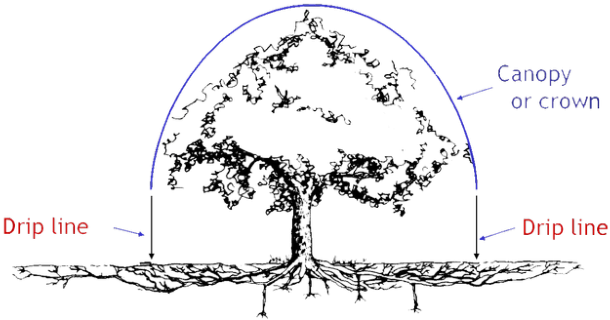 To make sure you are preserving your trees' health, scope out their irrigation zone. Most tree roots extend far beyond