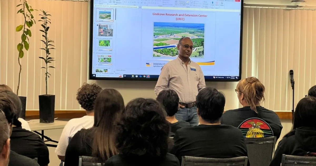 Lindcove REC recently organized a “Citrus Workshop for Hanford FFA Students” reinforcing our dedication to Youth Outreach and Education to nurture the future generation of agriculturists. On September 18, 2024, Sophomore students from Hanford High School visited LREC. Throughout the day, they engaged in various activities aimed at connecting research to with practical solutions for growers. The event started with Dr. Ashraf El-Kereamy, Director of the LREC Center, who provided an overview of LREC's history and its continuing commitment to cooperative extension. Dr. Kereamy discussed different projects hosted at the LREC facility and the commitment of LREC to pioneering a tech-advanced future of farming. Dr. Sandipa Gautam, IPM Advisor shared research and extension program focused on integrated management of citrus pests important to California growers. The bud-grafting demonstration shown by Gerry was a highlight of the day. Donald Cleek, Superintendent at LREC gave students an overview of the packline and a tour where students learned about how fruit is sorted, graded, and packed. Students also visited CUPS facility, the first of its kind citrus growing under protective screen in California.