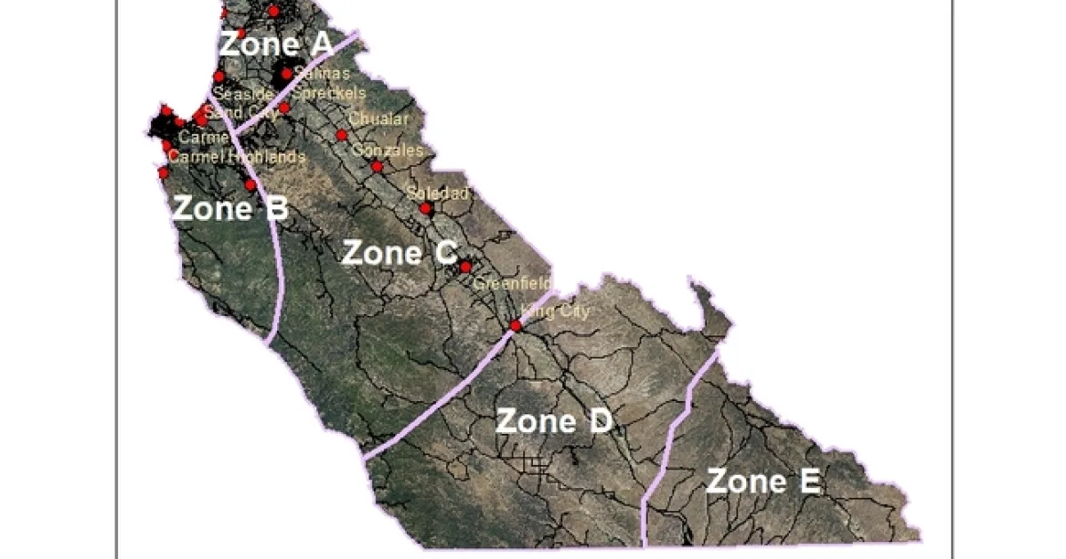 Monterey County has been divided into five rainfall zones (see Figure 2).