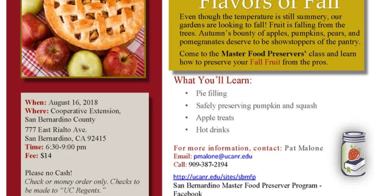 Just a reminder for the Flavors of Fall Class in about 2 weeks!