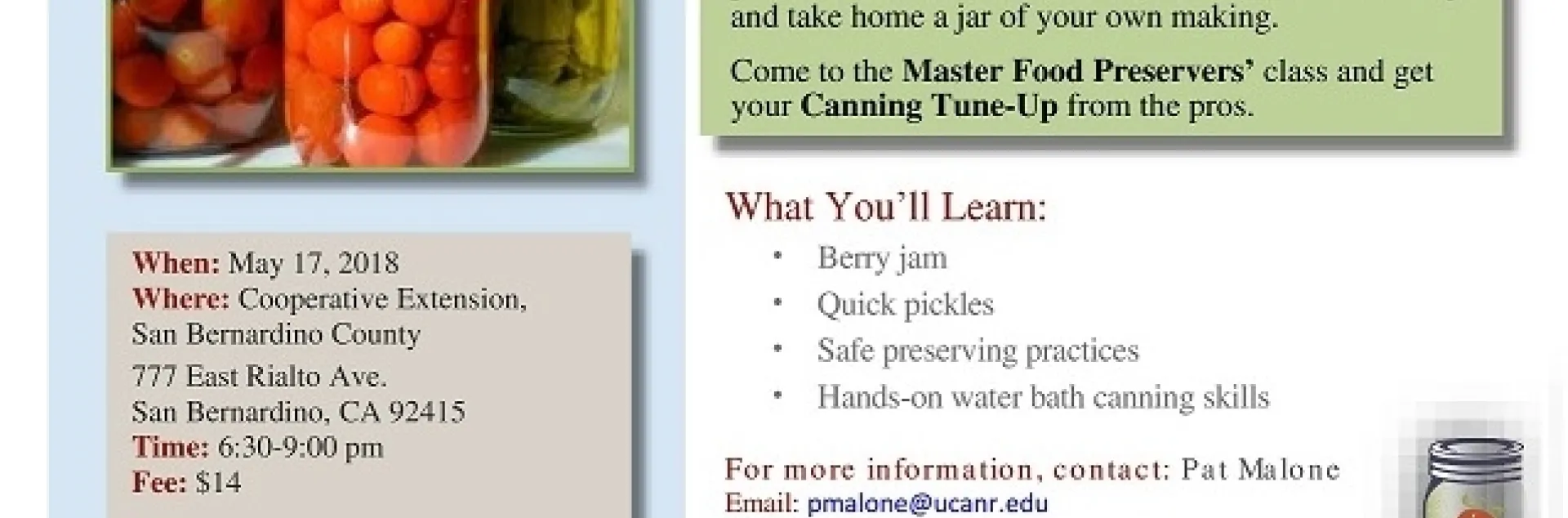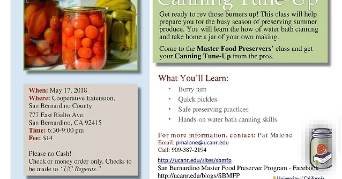 Attend the Canning Tune-up Class, have fun, and get valuable info and practice!