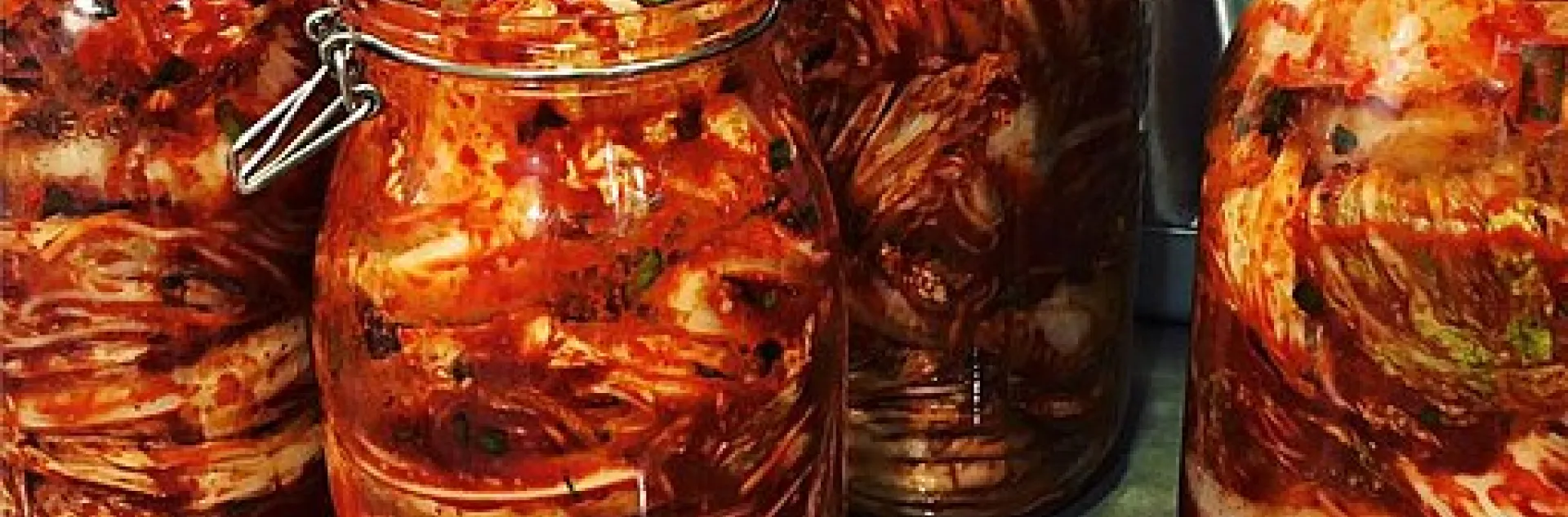 Kimchee in Jars (by Marcbarrington [CC BY-SA 4.0 (https://creativecommons.org/licenses/by-sa/4.0)], from Wikimedia Commons)