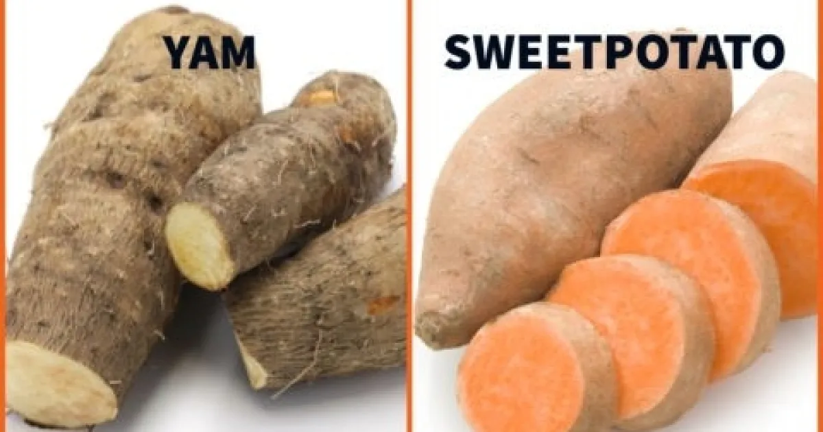 First, in the United States, yams, an edible tuberous root vegetable, are actually sweet potatoes (Ipomoea batatas), a member of the bindweed or morning glory family, Convolvulaceae. Sweet potatoes can range in shape, size, and color, and will have a tapered end. On the other hand, botanically different, the true yam is the common name for some of the plants in the Dioscoreaceae family. This root has a very thick, bark-like skin with dense, dry flesh which can range from white/yellow/purple or pink - not orange, and can grow to over a hundred pounds. Completely different vegetables, neither are actually a "potato" which is in the nightshade family.
