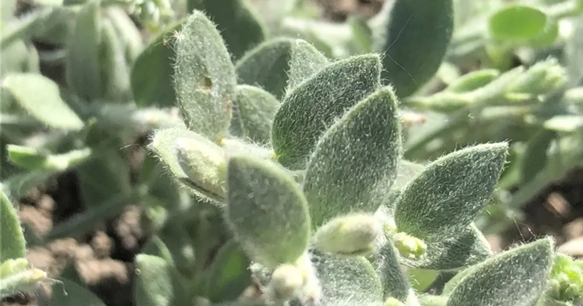 Figure 3. Alkaliweed produces grey-green leaves that are covered with NUMEROUS soft and silky hairs.
