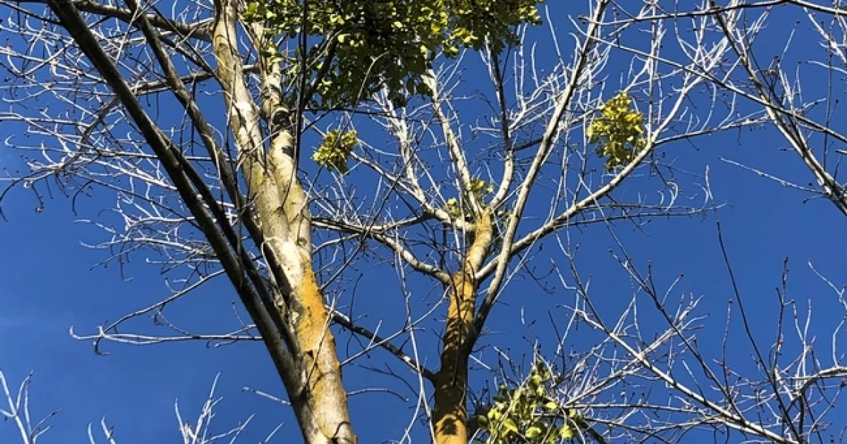 Phoradendron species parasitizing a street tree in Fresno. Photo by Lynn M. Sosnoskie.