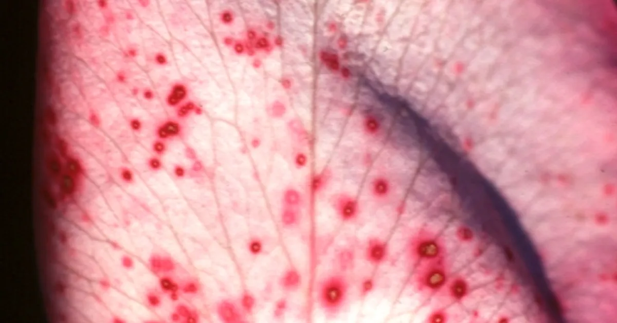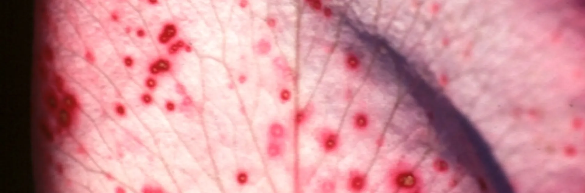 Fig 1. Rose petals with early Botrytis symptoms. Note necrotic spots with dark halos.