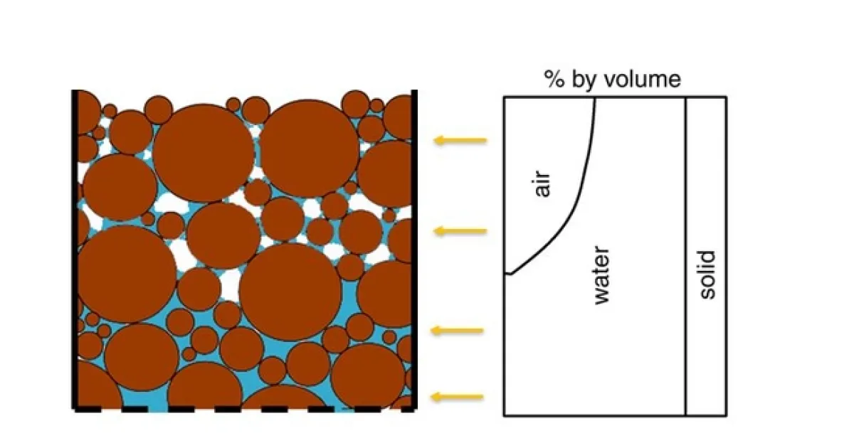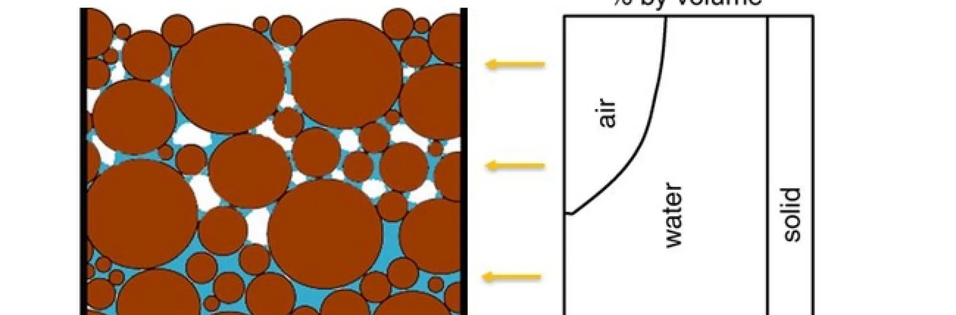Simply, container soils consist of solids that form the intricate pore space that holds water and air. After full drainage (container capacity), the pore space on the bottom of the pot is saturated with water. Closer to the surface, there are more open pores that hold air. This is seen in Figure 1.