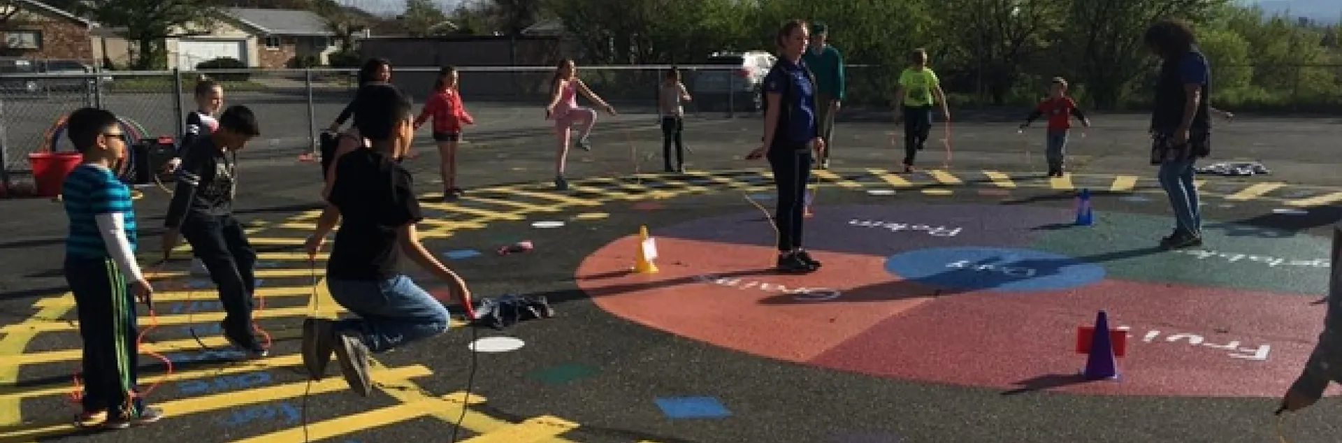 Following the completion of each stencil/mural project, UC CalFresh Butte Cluster staff trains teachers at each site on how to properly implement CATCH activities on their newly stenciled playground. In addition to physical activity components, the stencil and mural designs also integrate concepts the children discover in the classroom by including site words, patterns, and numbers. They also include elements like MyPlate, the plant life cycle, and the water cycle which help to reinforce concepts from UC CalFresh nutrition and garden curricula.