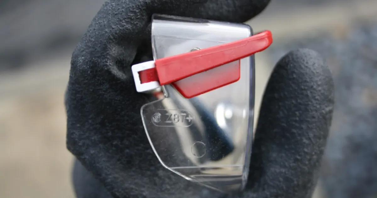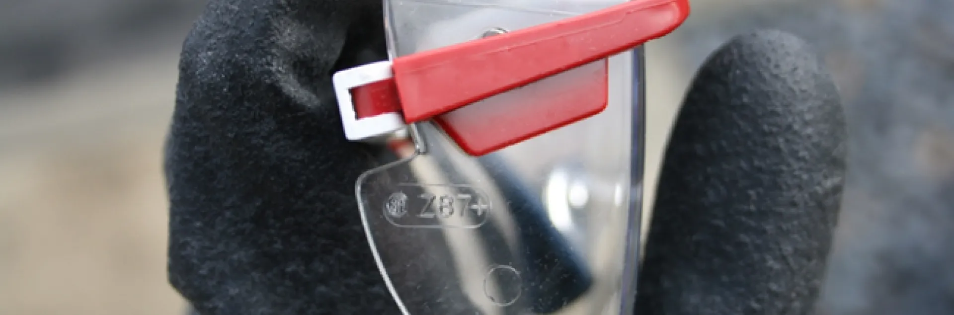 All types of protective eyewear must be labeled “Z87.1” or “Z87+” to indicate that it meets the 2010 American National Standards Institute standard for impact resistance. This is done using permanent, raised lettering (Figure 1) and indicates that the manufacturer certifies that its eyewear meets the defined baseline of protection.
