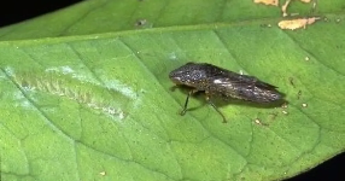 The glassy-winged sharpshooter is a large leafhopper that can transmit several important, often fatal, plant diseases in California. This includes Pierce's disease of grape, alfalfa dwarf, almond leaf scorch, and mulberry leaf scorch. Pierce's disease is of most concern in California since the state accounts for about 94% of U.S. grape production.