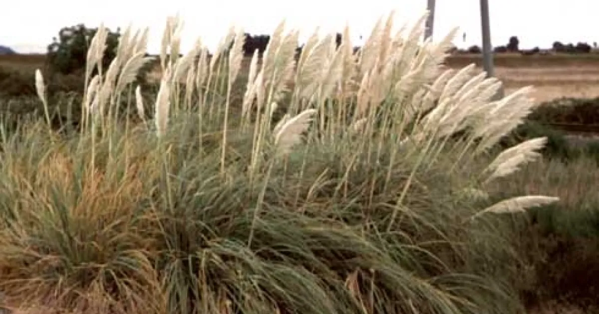 Pampasgrass (Cortaderia selloana) is a common ornamental landscape plant that readily naturalizes throughout California's coastal areas and some interior regions. Historically, pampasgrass was planted for erosion control, but it has since escaped cultivation and spread along sandy, moist ditch banks throughout coastal regions of southern California. Pampagrass can also grow in the hot, dry climate of inland areas of California.