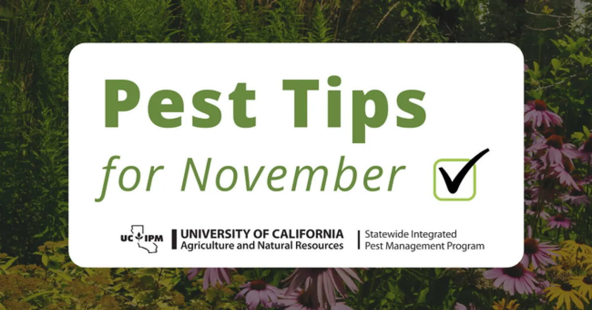 Rainy, cool weather is fast approaching for many parts of California. To help you determine what to do in the landscape during this time of the year UC IPM offers a Seasonal Landscape IPM Checklist. The online checklist provides monthly pest management to-dos for your region so you can prevent pests and their damage in the garden and landscape.