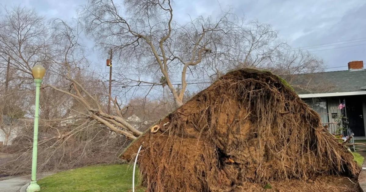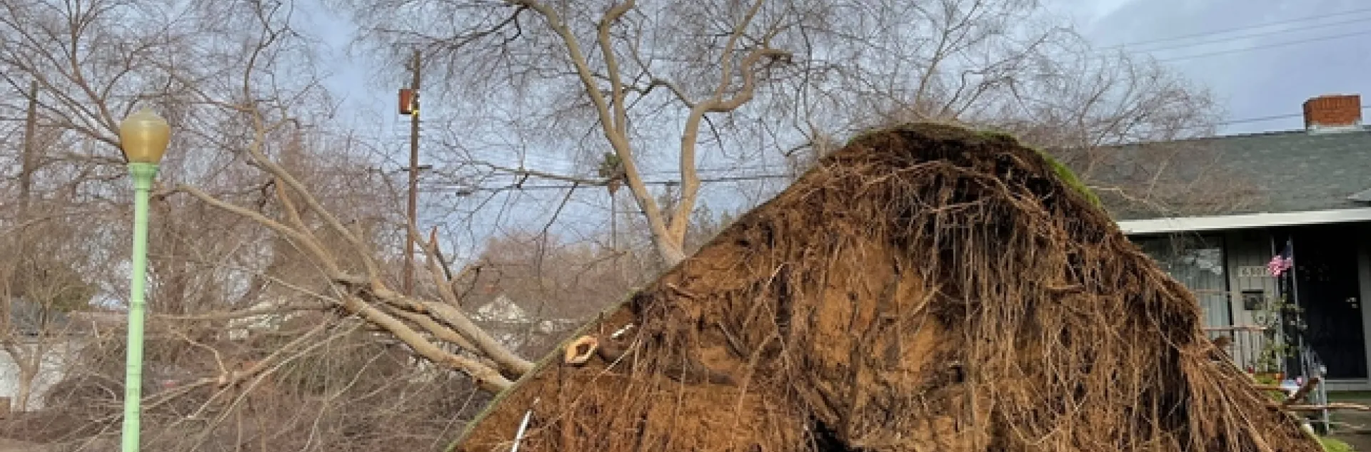 Downed tree with exposed roots in front of residence. (Credit: I Gonzalez)