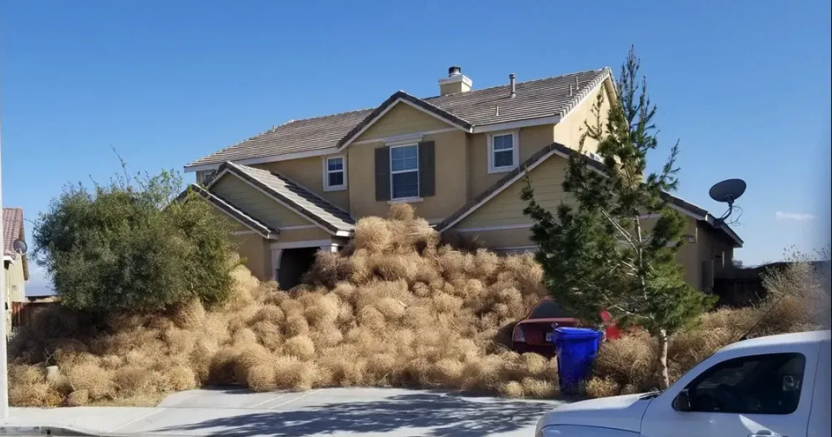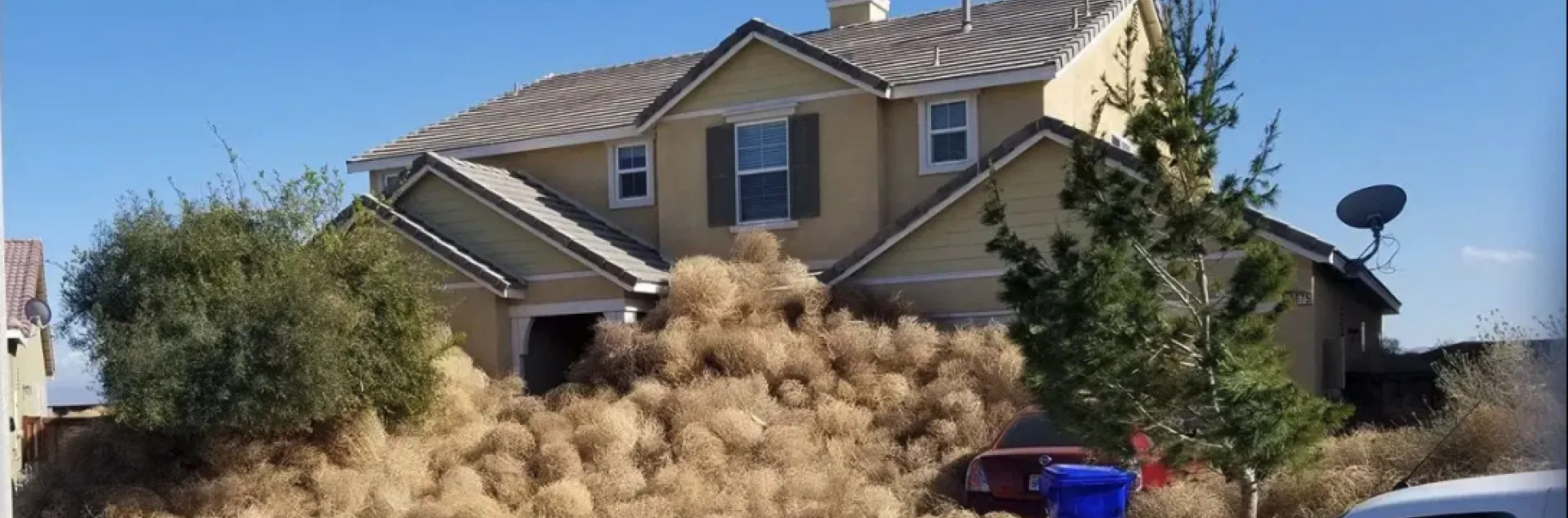 Tumbleweeds rolling across the landscape may make you think of classic old Western movies, but tumbleweeds, or Russian thistle, is more common today than you might think. This invasive plant can grow anywhere the soil is disturbed and once it matures, it breaks off its stem and the dried plant blows across roads and fields spreading seeds for miles. Tumbleweeds can pile up in urban areas, making roads and sidewalks impassable and creating a fire hazard.