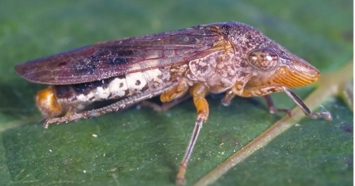 The glassy-winged sharpshooter is a large leafhopper that can transmit several important, often fatal, plant diseases in California. This includes Pierce's disease of grape, alfalfa dwarf, almond leaf scorch, and mulberry leaf scorch. Pierce's disease is of most concern in California since the state produces 94% of U.S. grapes.