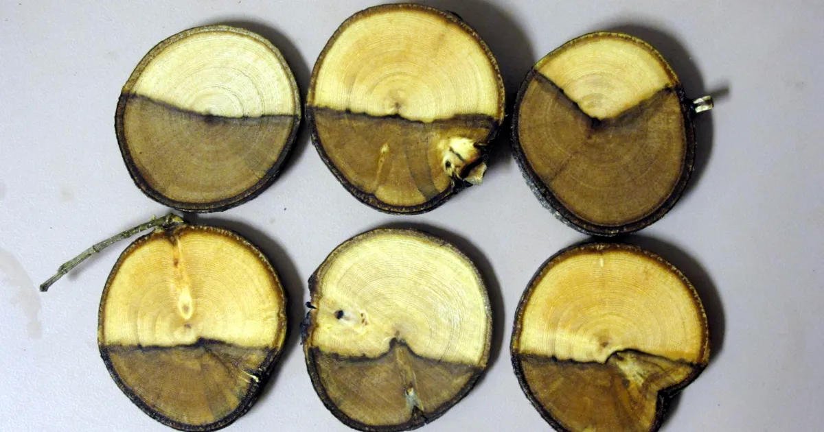 To confirm Bot canker, you need to check the branches and trunk for wedge-shaped dark staining under the bark that extends into the heartwood, and fungal fruiting bodies, which look like small black dots scattered across the bark.
