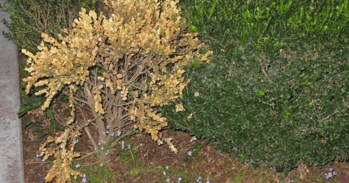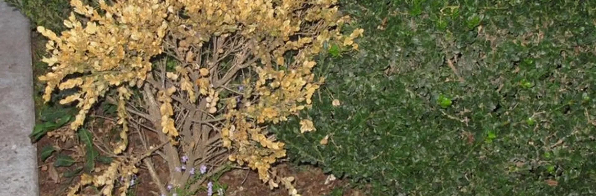 Boxwood dying from Phytophthora root rot. Photo by Jim Downer.