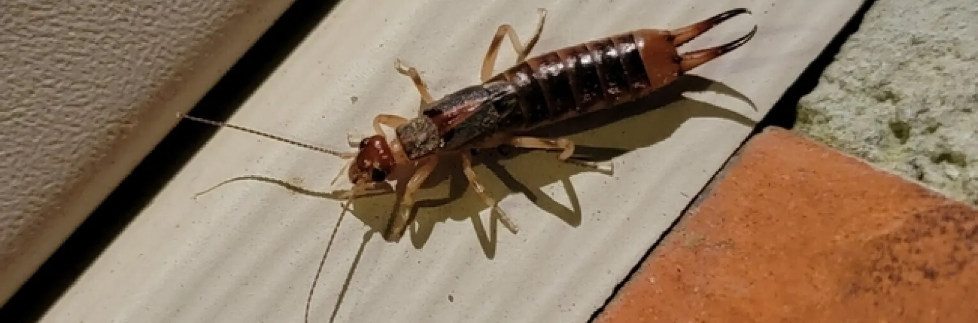 Earwig on the threshold of an exterior door. Credit: Rebekah D. Wallace, University of Georgia, Bugwood.org.
