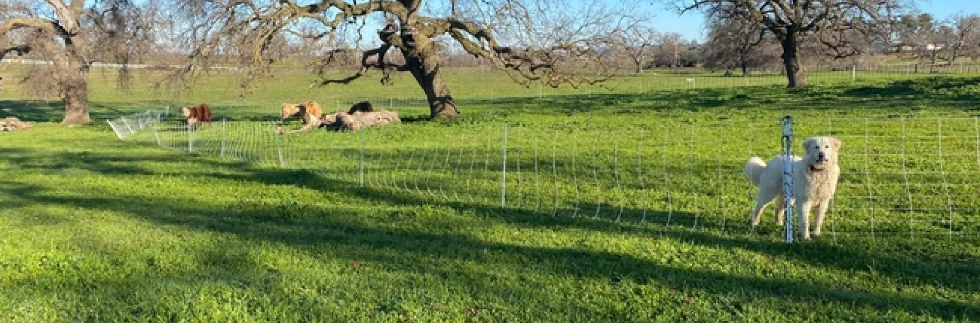 For now, Sam remains inside an electro-net paddock, which keeps him with “his” cattle. Eventually, we hope that he'll be well-enough bonded with the ranch livestock that we won't need the eletro-net. We'll also work to get him trained to eat from an automatic feeder in a creep-feeding set-up – the labor of daily feeding is one of the drawbacks that many ranchers cite about using LGDs. And, like the final exam we subject our sheep-guarding dogs to, Sam will need to prove trustworthy during the calving process. These are all developments that will hopefully be natural as Sam matures. For now, however, he continues to make the progress I'd expect from an 8-month-old dog.