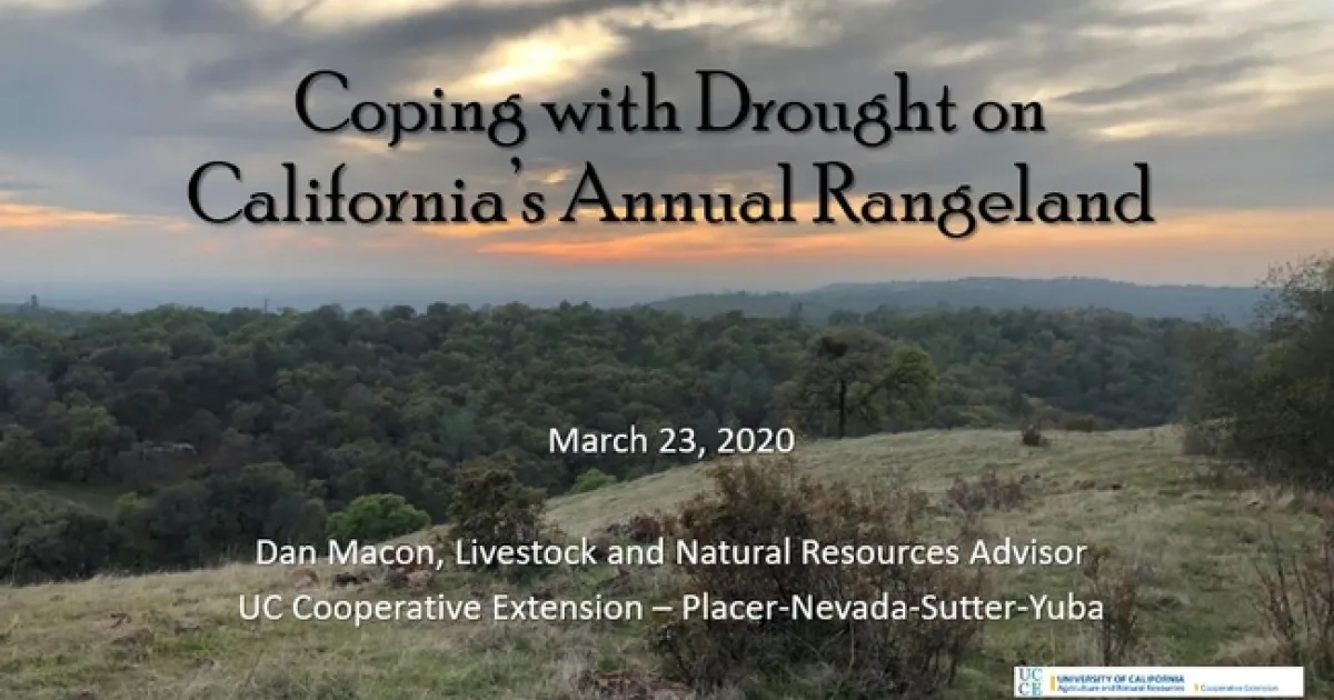 Yesterday, I was invited to give a presentation during the California-Nevada Drought Early Warning System regular bimonthly webinar. The first two talks covered current conditions and future outlook - and even with the rain and snow we had in our part of the Sierra Nevada and Sacramento Valley last week, we remain in drought conditions. If you're interested in the details, here's a recording of the webinar talks (mine is the third talk in the webinar). The first two talks confirmed my observations. After last week's rain, I checked soil moisture on our winter rangeland - even with three inches of precipitation, the soil was only 50-75 percent saturated (which explains the lack of water in our seasonal creeks). We're starting to see some of our annual grasses head out, indicating the possibility of an earlier-than-normal decline in forage quality. While the snow in the mountains was welcome, our snow water content remains well below average for this time of year.