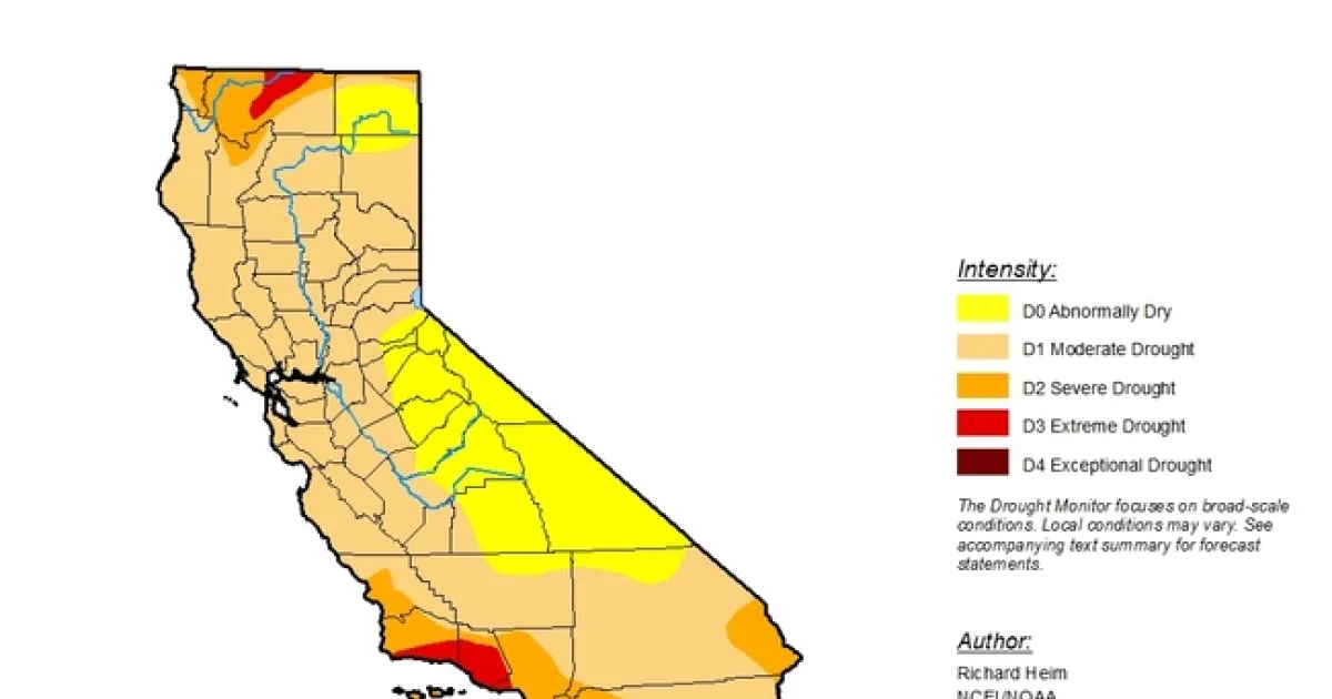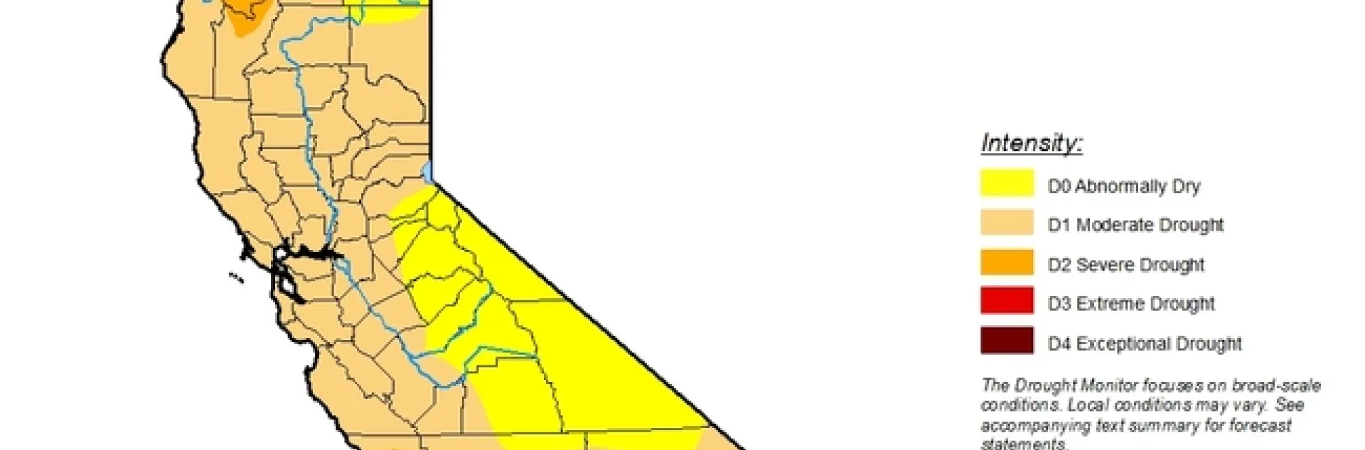 Thanks to the leadership of Dr. Leslie Roche, our UC Cooperative Extension Specialist for rangeland management at UC Davis, county range and livestock advisors and other range professionals are reporting local conditions to the U.S. Drought Monitor on a monthly basis during the fall, winter and spring. Based on local observations, formal measurements of forage production, and reports from ranchers, these monthly updates bring greater resolution – and more on-the-ground perspectives – to the U.S. Drought Monitor's weekly drought reports and longer-term drought forecasts. A comparison of last week's California drought map (top) with this week's map reflects our most recent report!