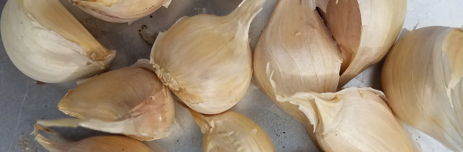 Harvest garlic by lifting out with a garden fork, rather than pulling. After harvest dry the bulbs on the ground for several days with the tops attached. It is important to protect them from sunburn by providing shade or covering them with other plant leaves. They may also be dried in a well-ventilated area. If you plan to braid your garlic, do this when the tops (the necks) are still moist and flexible. After drying leave the tops on to increase the storage life of the bulbs. Garlic is best stored in a cool, dry, dark area with good air circulation around all sides of the bulbs.