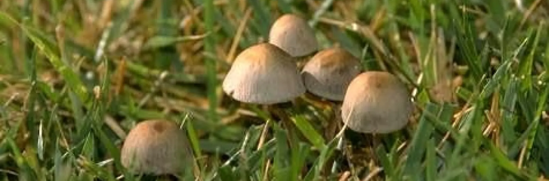 Mushrooms of the lawn fungus, Panaeolus foenisecii, haymaker's Panaeolus. Jack Kelly Clark, UC IMP