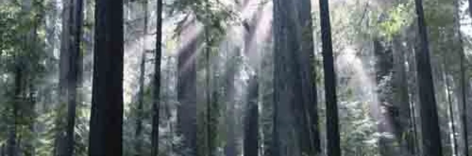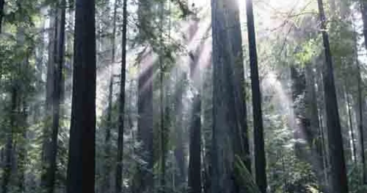 The winter sun is much lower than in summer, as seen in this November photo of redwoods. Laura Lukes