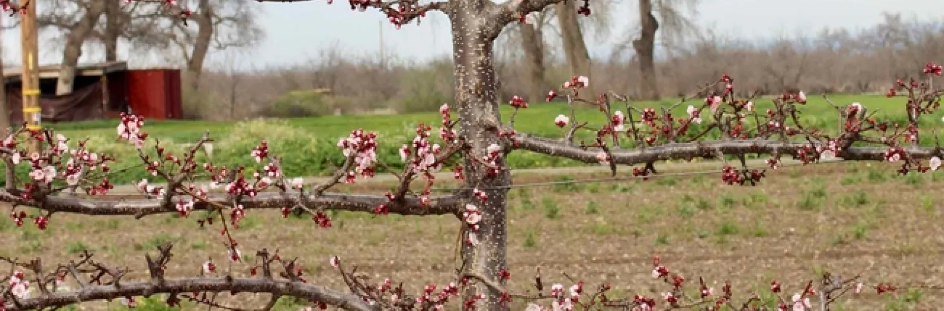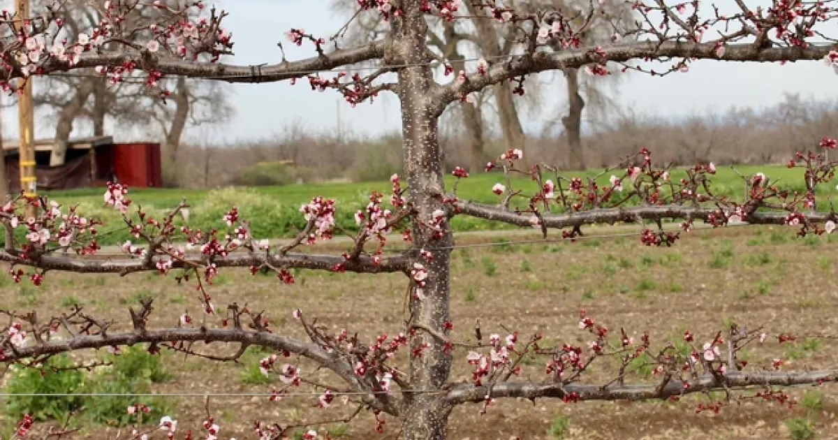 Flowering aprium grown on espalier trellis structure at the Master Gardeners' Demonstration Garden. Michelle Graydon