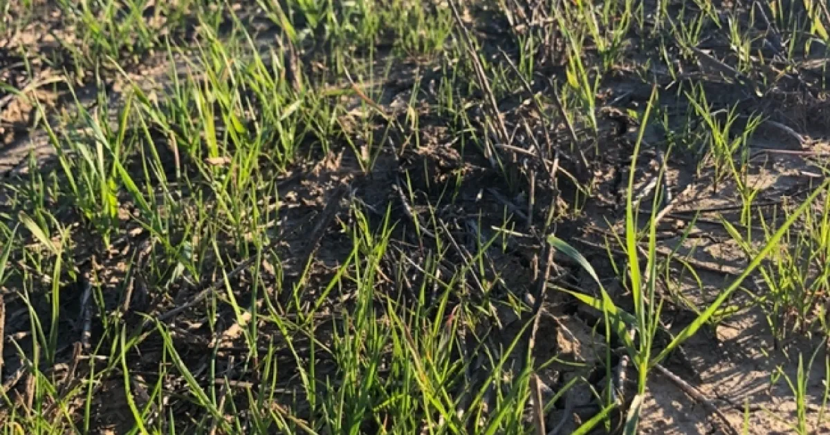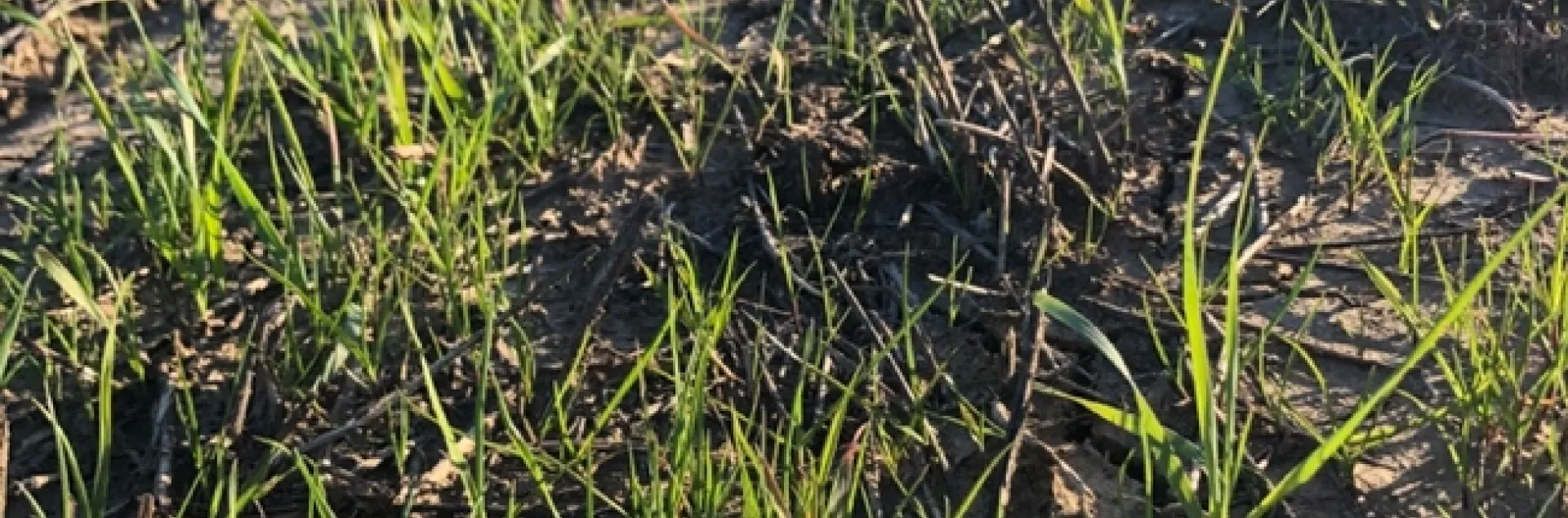 Italian ryegrass (3-4 leaves) among wheat seedlings (Feekes 1-2)