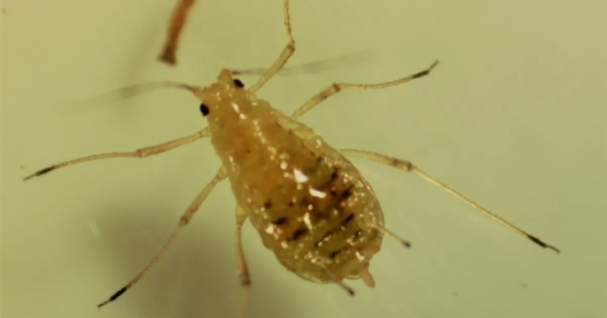 Since last week, I have been receiving samples with “red” aphids to get the identification. It turned out that this time, most of these ‘reddish' aphids were identified as the lettuce aphid, Nasonovia ribis-nigri (Fig. 1). To me, they look more red-orange; however, their distinct black marks on the abdomen and short cauda (finger-like, short appendage at the end of the abdomen) are some key ID features. These features help to differentiate the lettuce aphid from the other “red” aphid, the potato aphid Macrosiphum euphorbiae (Fig. 2). Yes, we do have two different species of red aphids!